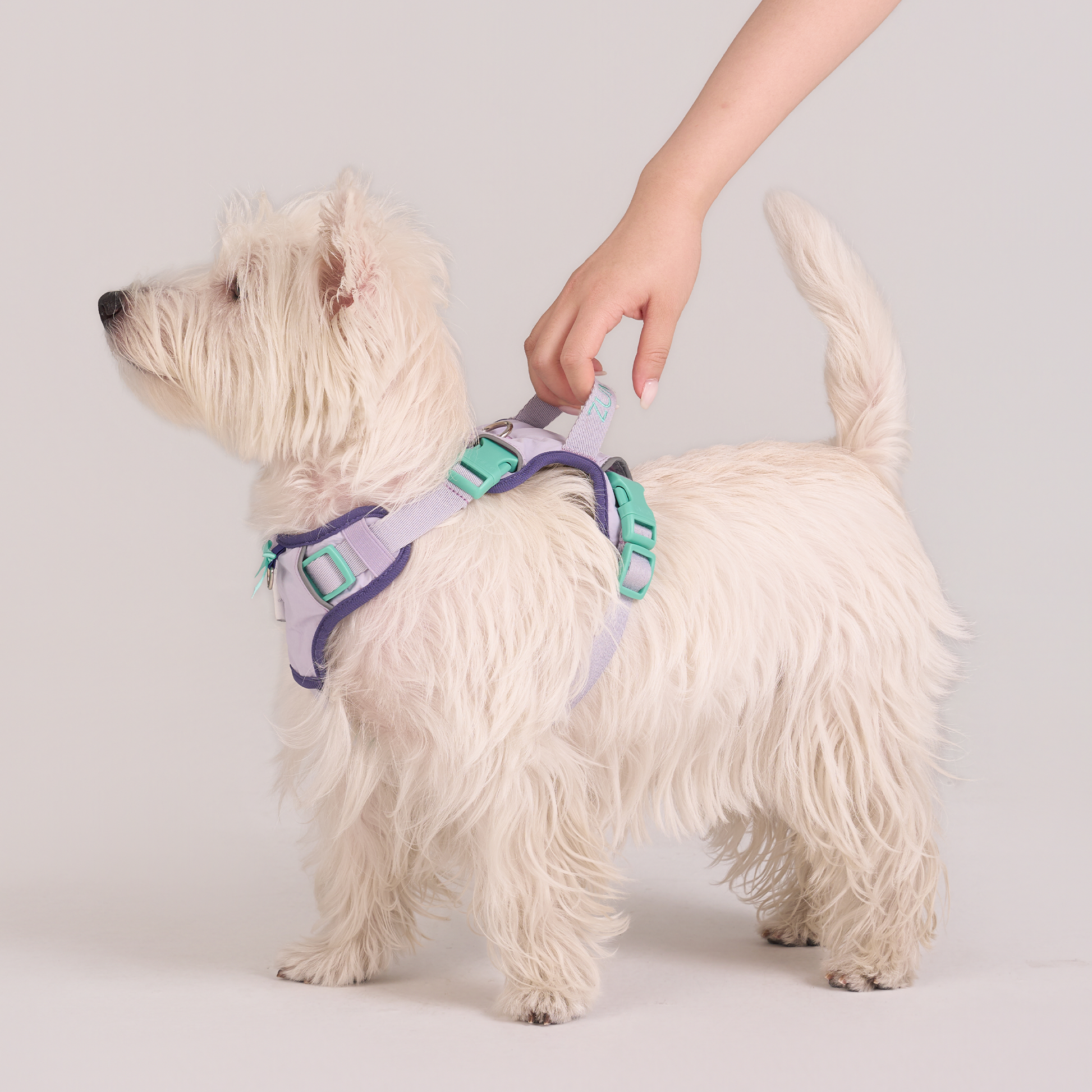 A durable, 3-layer harness designed for safety, comfort, and everyday adventures. Features a no-pull handle, breathable mesh, and water-repellent finish—perfect for growing pups.