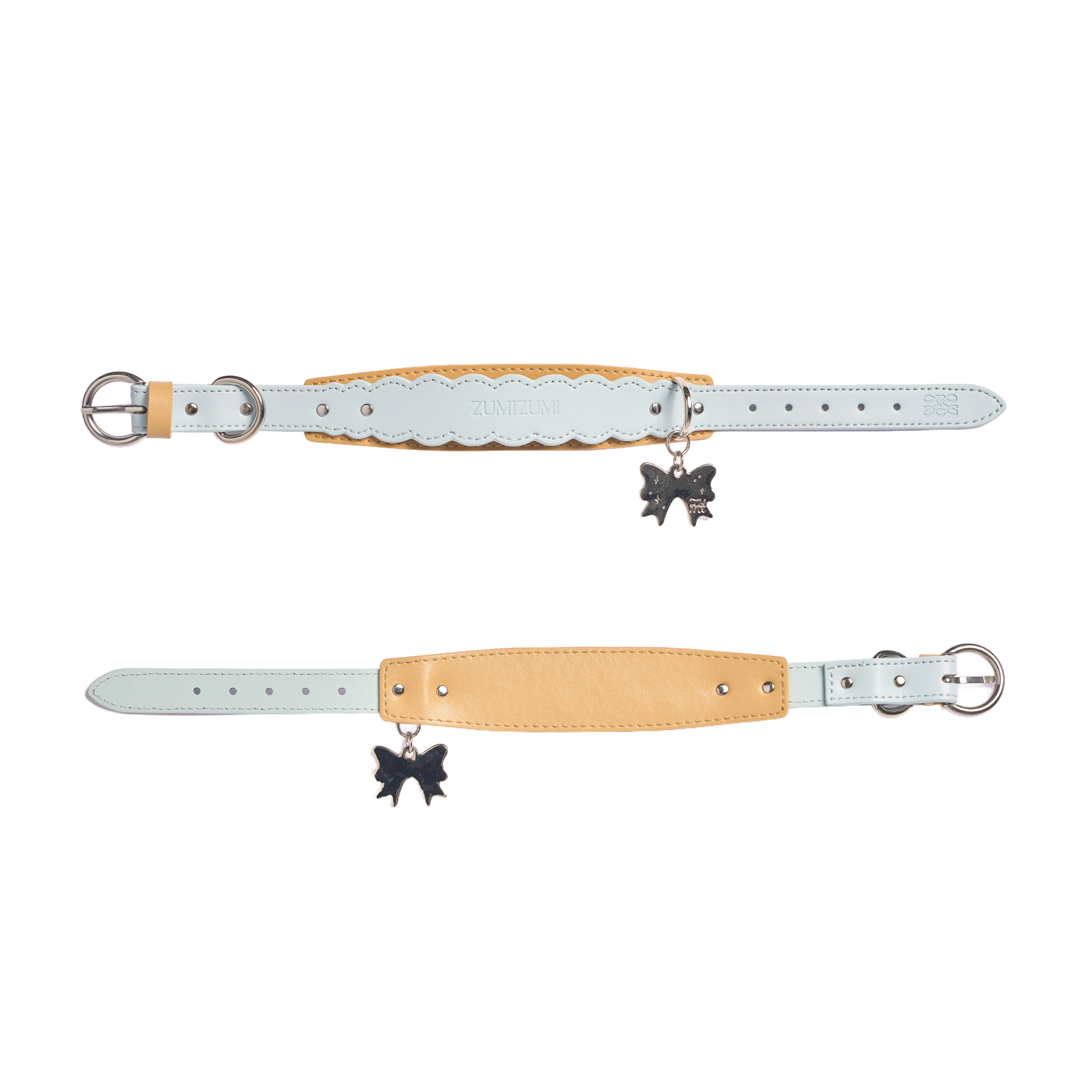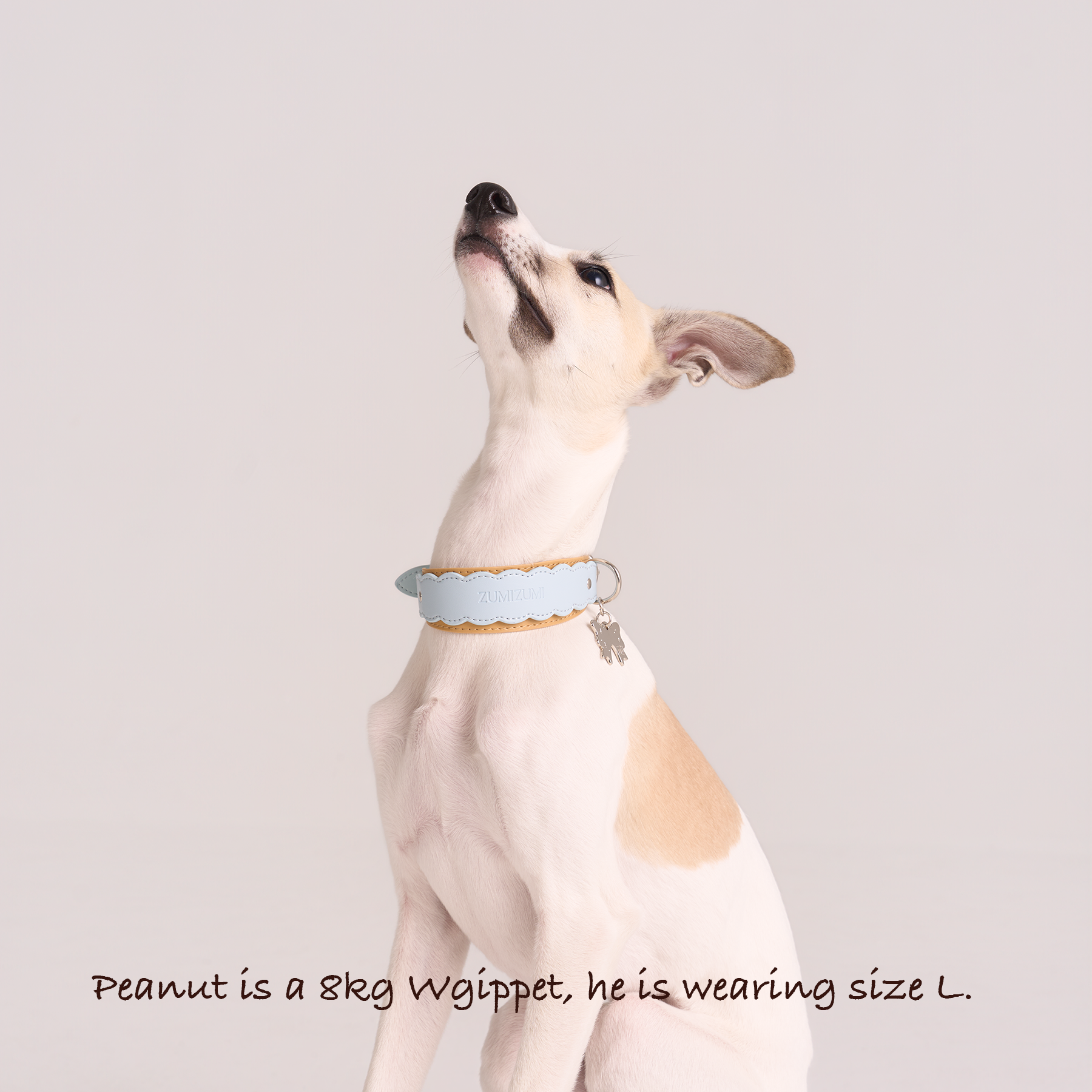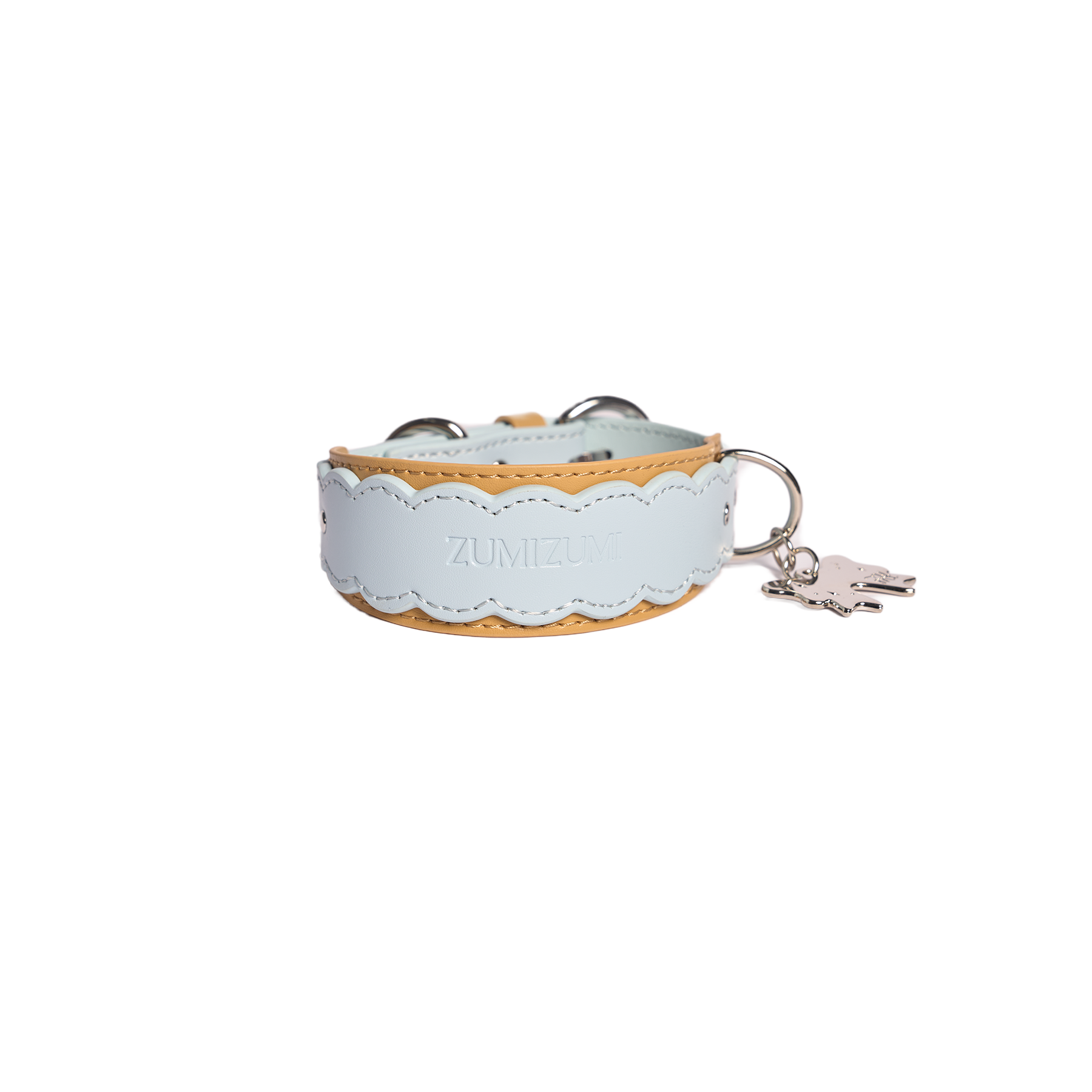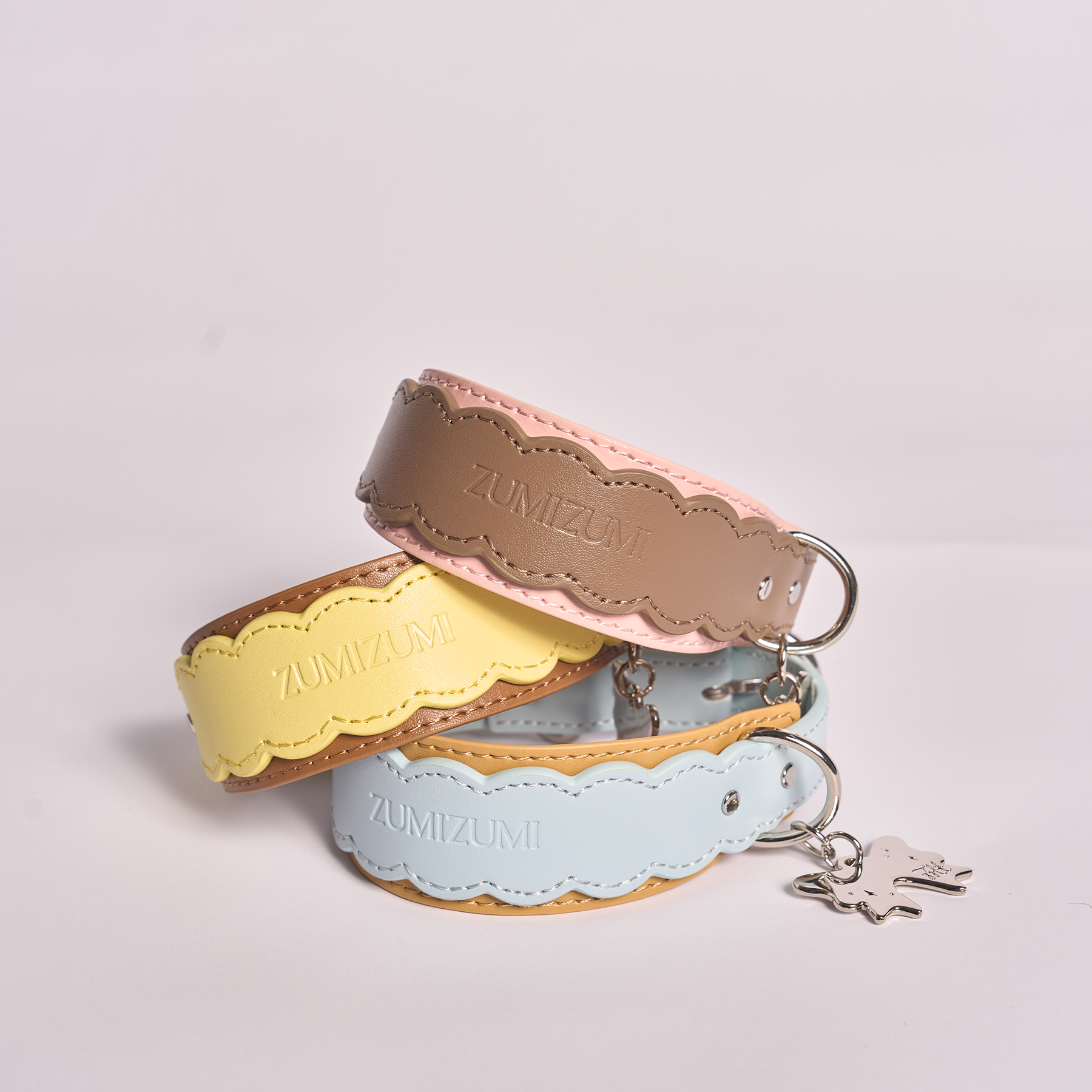 We set out to create a collar that protects the neck while still feeling chic and unmistakably ZUMIZUMI. The widened silhouette offers better pressure distribution for both sighthounds and small breeds, supported by a soft padded backing for everyday comfort. We paired smooth leather with recycled leather reinforcement to ensure pull-strength safety, then finished it with our signature shell-edge detail and a customisable bow-shaped ID tag, making it safety stylish and personal.